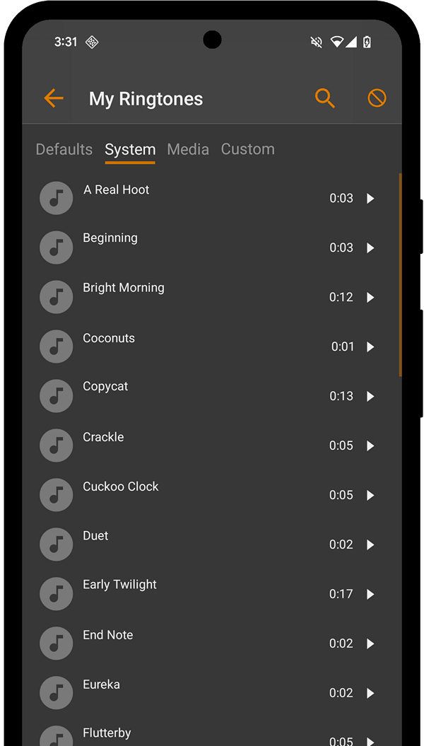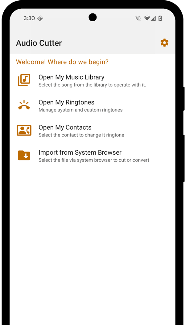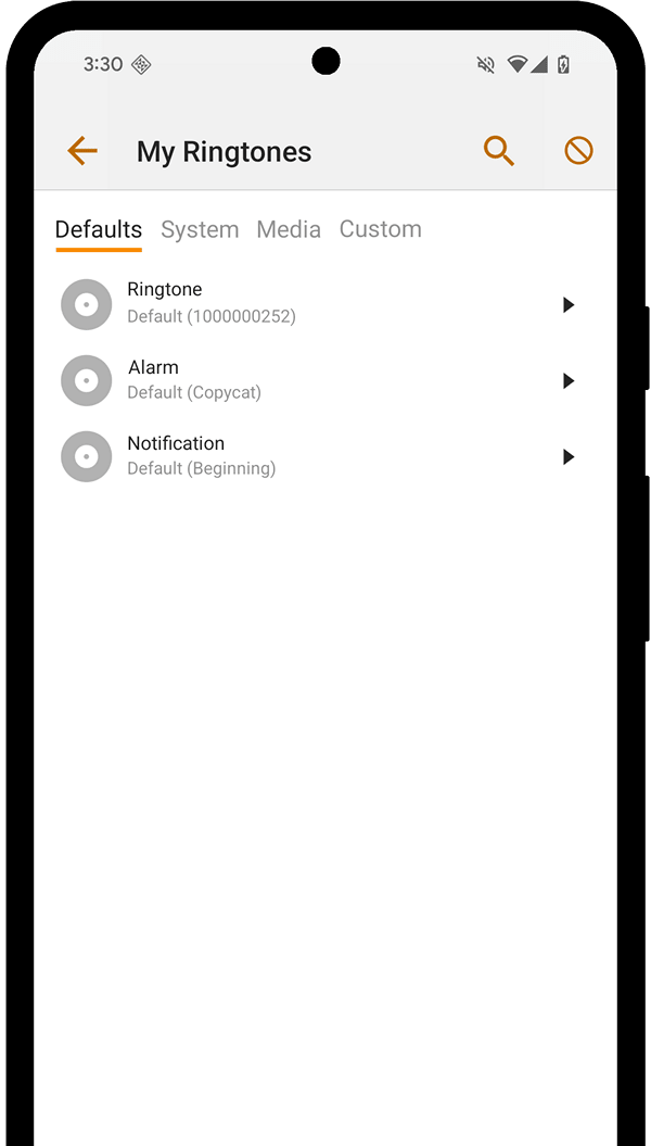 • An ability to set audio file as default ringtone for alarm / call / notification